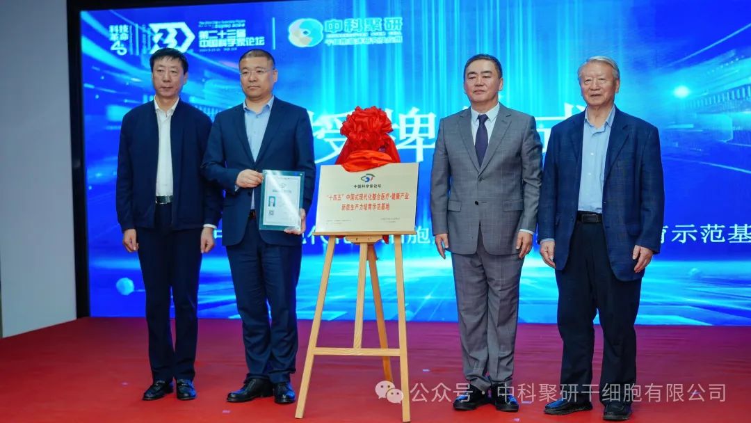 隨后,由陳貴主席代表中國科學家論壇組委會,為中科聚研干細胞有限公司正式授予“中國式現代化干細胞產業新質生產力教育示范基地”牌匾,為姜延明董事長頒發聘書。姜延明董事長被聘任為“中國科學家論壇副主席”。同時由中共中央對外聯絡部原副部長馬文普,深圳洲際通航投資控股有限公司董事長王中閣上臺共同見證這一時刻。